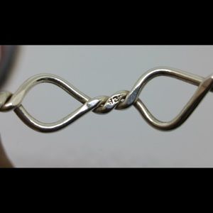 This gauge wire is just the right size to bring out the shine and attention that silver medal gives a silver lover that admires in a piece like this. This is one I bought it a year ago at the mall I have had it on every since never taking it off but 2 clean it & 4 the Dr. it IS STERLING SILVER. Stamped The last picture is a listing of the same bracelet on another platform.