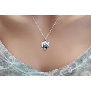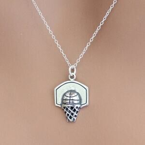 This is a beautiful Sterling Silver Basketball Hoop Charm Necklace. Both the charm and the necklace are Sterling Silver (with exception to the Bronze star).