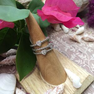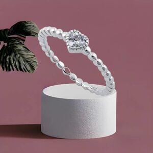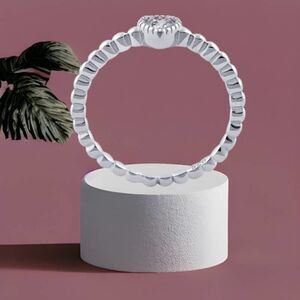 Sterling Silver Beaded Clear Heart CZ Ring 6,7