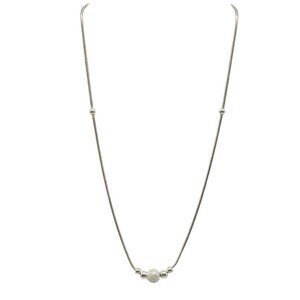 This elegant sterling silver necklace features a delicate design with a textured central bead and smooth accents. Its sleek, modern style complements professional attire, adding a subtle touch of sophistication. The lobster clasp ensures secure wear, making it a reliable accessory for everyday business settings.
