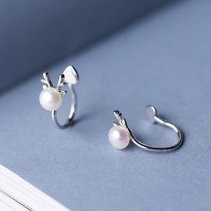 Sterling Silver Beautiful Cute Holiday Christmas Reindeer Deer Pearl Ear Cuffs