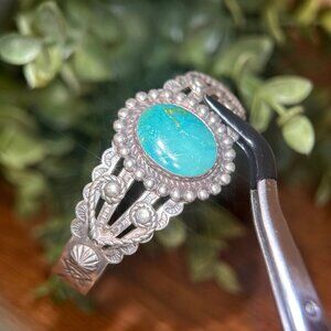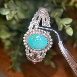 Sterling Silver Bell Turquoise Cuff Bracelet.