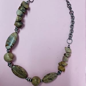 Add bold elegance to your jewelry collection with this Sterling Silver Big Links Chain & Chunky Jasper Beads Necklace. Featuring oversized sterling silver links and earthy, chunky jasper beads, this statement piece offers a perfect blend of durability and natural beauty. A rare vintage find from 1999, this necklace is in excellent condition, making it a must-have for gemstone jewelry lovers and collectors.