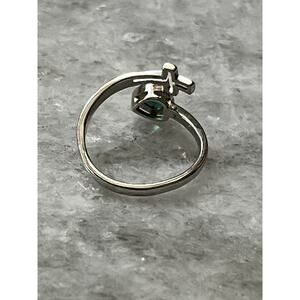 Sterling Silver Birthstone Heart Cross Ring Size 7 Adjustable Green May