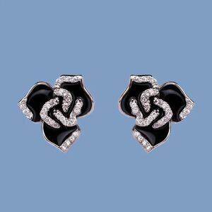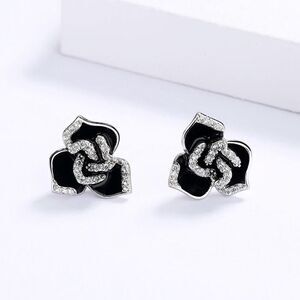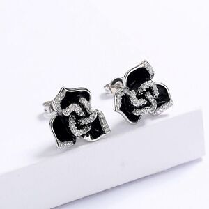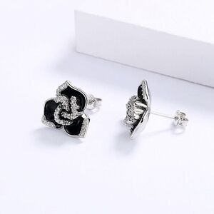 Elevate your jewelry game with the stunning Sterling Silver Black Flower Enamel Drip Rhinestone Earrings.