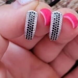 Sterling Silver 925 Black Hoop Earring Simulated diamonds Black gothic Sparkles New