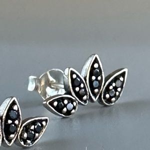 Sterling Silver Black Spinel Dainty Stud Earrings