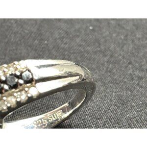 Sterling Silver Black & White Cubic Zirconia Halo Ring In Jewelry Box