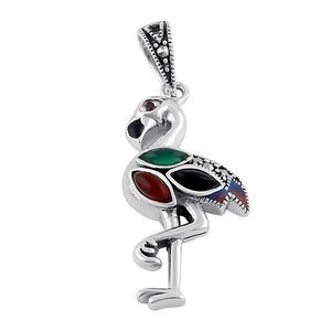 Sterling Silver Black Onyx Mixon and Dark Garnet Flamingo Marcasite Pendant New