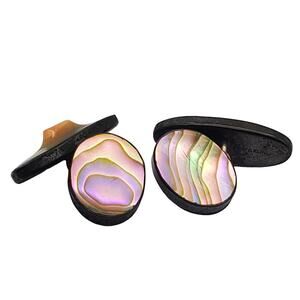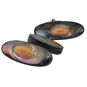 Sterling Silver Blister Pearl Cufflinks Antique Abalone Shell Cuff Links Jewelry