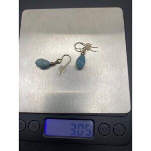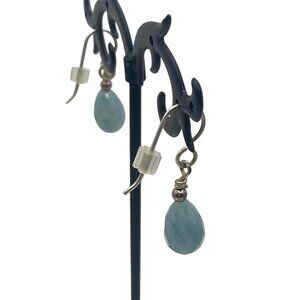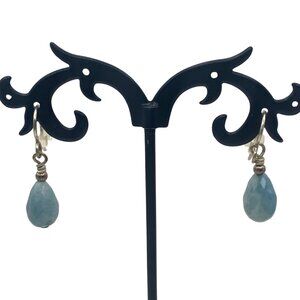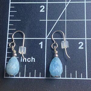 Sterling Silver Blue Chalcedony Drop Earrings Faceted Teardrop Tested 1.25"