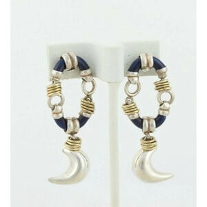 Blue Enamel Earrings Gold Accents Crescent Moon