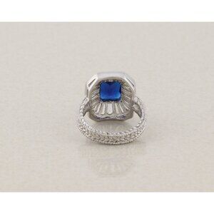 Sterling Silver Blue Cubic Zirconia and White Cubic Zirconia Ring Size 7 1/2