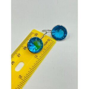 Tags: vintage earrings, blue crystal earrings, sterling silver, round drop earrings, hook earrings, silver jewelry, aqua blue, dangle earrings, statement earrings, women love gift, elegant earrings, prom party earrings