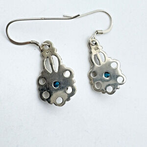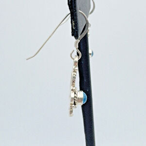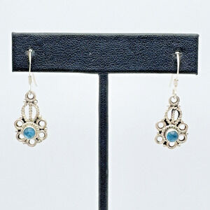 Sterling Silver Blue Glass Earrings Filigree Lightweight 1.25"