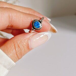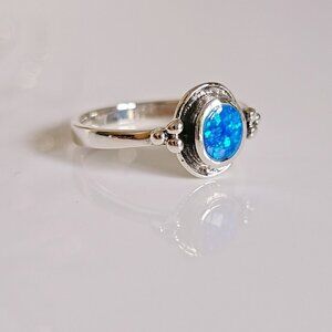 ~Beaded Blue Opal Lab Sterling Silver Ring~