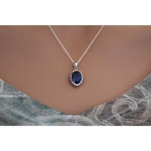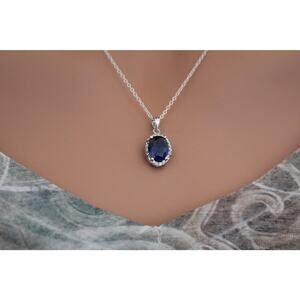 This is a beautiful Sterling Silver Blue Oval CZ Stone Pendant Necklace. Both the charm and the chain are made from sterling silver. :) This charm is on an 18 inch chain.