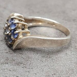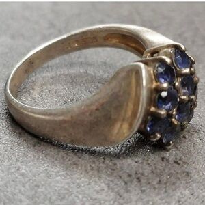 Sterling Silver Blue Sapphire Cluster Ring Size 7.75