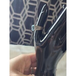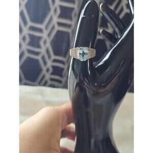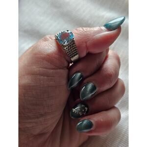 Sterling Silver Blue Topaz Ring Sz 8.5 925 CCC Signed Vintage Mesh Band Jewelry