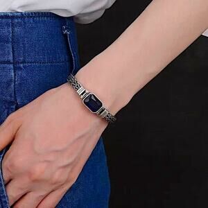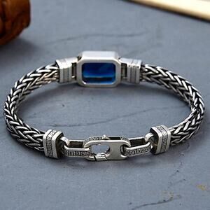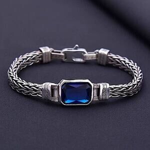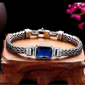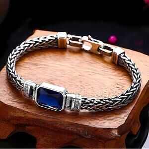 Sterling Silver Blue Zircon Braided Bracelet, Unisex, Handmade