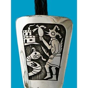 Sterling Silver Bolo Tie Handmade Native American Artisan Hopi Overlay Signed