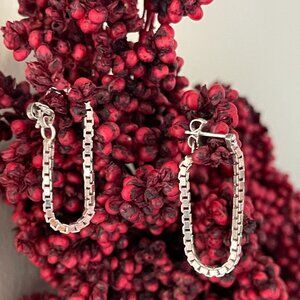 Sterling Silver Box Chain Dangle Earrings-NEW