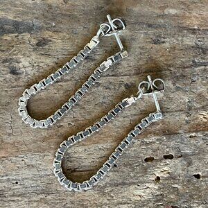 Sterling Silver Box Chain Dangle Earrings