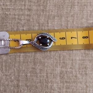Sterling Silver Box Chain Glass Red Stone Marcasite Pendant Necklace