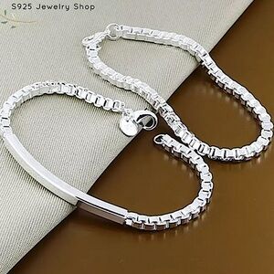 Sterling Silver 2 piece box chain Bracelet set width measures 4mm. Length measures 8”. 2” extender available upon.