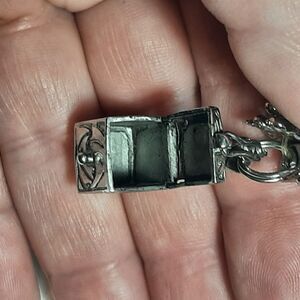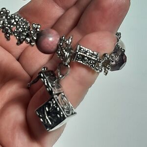 Sterling silver pendant charm box / prayer box bracelet. Is on clear elastic (elastic is yellowed, not sure how secure it is) Not sure what the beads are made of.. Charm box says "AA925" on bottom and opens up.