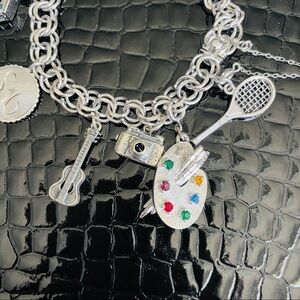 Sterling Silver Bracelet With 9 Charms by Danecraft, Monet, Wells Sterling HOBBY SPORTS ART