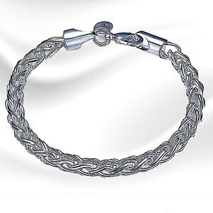 Sterling silver 8mm width braided bracelet measures 8” in length.