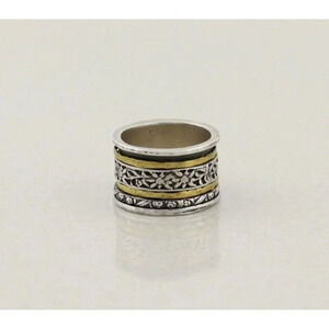 Sterling Silver & Brass Flower Spinner Ring Thick Band Cigar Ring Silpada Size 8