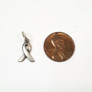 This is a sterling silver breast cancer awareness ribbon charm by SJC.
