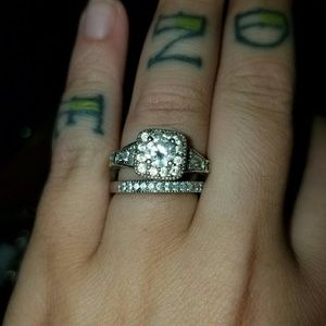 GORGEOUS bridal set, size 7.Includes wedding band and 2tcw white sapphire engagement ring. Simply selling because hubby upgraded mine. Was only worn for 2 months and is in excellent condition. Still have original box. Asking $45. I personally loved this set!