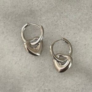 Sterling Silver Bubble Heart Charm Dangle Huggie Hoop Earrings