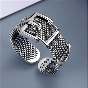 Sterling Silver Buckle Design Cuff Bracelet & Ring Bundle. Stamped 925 sterling silver.