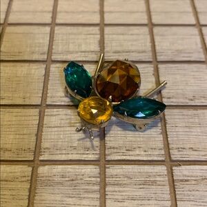 Adorable bumble bee brooch, set in sterling silver! Excellent condition! Hallmarked on back. Clasp works and is secure. A fun piece of jewelry!