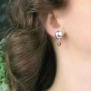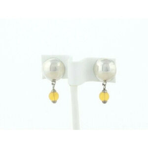 Sterling Silver Button Earrings with Yellow Glass Bead Dangle Drop Earrings
