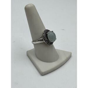 Sterling Silver CNA PRANDA Jade Cabochon Filigree Cocktail Ring Size 9 - 4.7g