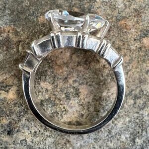 ~ Vintage, Sterling Silver, Cubic Zirconia, ESPO Ring. Ring Size 5 3/4, The Band Is 1.9mm Wide At The Bottom And 11mm Wide At The Widest Point. Marked Sterling, ESPO On The Inside Of the Band. Weighs Approximately 4 Grams On My Scale. In Excellent Condition.