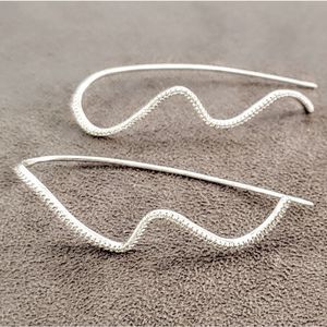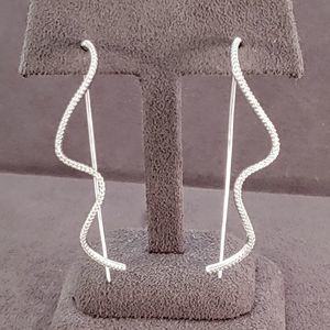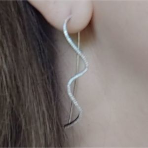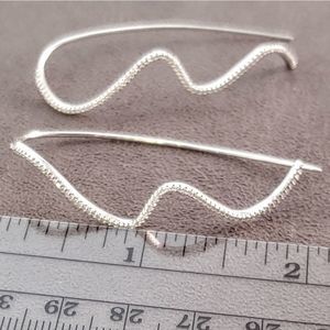 Gorgeous rhodium plated sterling silver cubic zirconia modern minimalist wavy earrings.