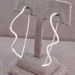 Sterling Silver CZ Modern Wavy Earrings NEW