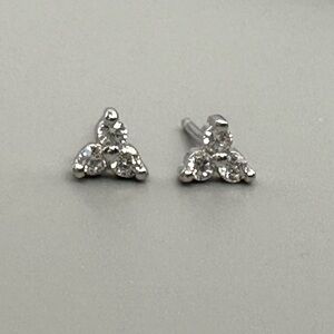 Sterling Silver CZ Tiny Stud Earrings Rhodium Finish