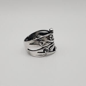 Sterling Silver CZ Vine Design 14mm Band Ring Size 5.5