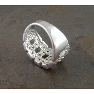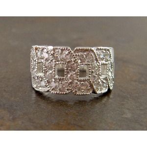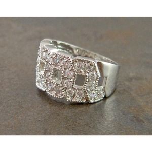 Sterling Silver CZ Wide Band Ring Size 7 Geometric Pave