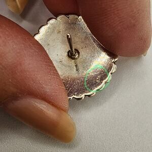 Round polished carnelian cabochons are bezel-set in a wide sterling silver double row beaded edge. Marked 925; post backs. Just under 1 inch across, the pair weighs 10 g. Likely made in India/Bali, 1980s-1990s. Very Good pre-loved condition with gentle patina.