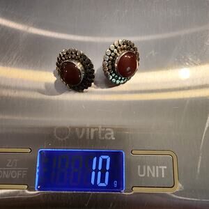 Sterling Silver Carnelian Pierced Earrings • 925 Round Beaded Rim • India/Bali