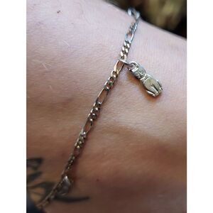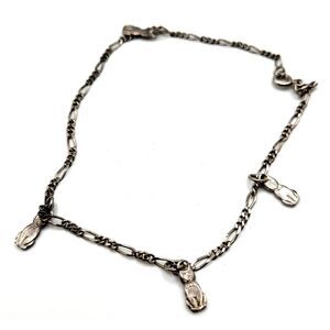 Sterling Silver Cat Charm Anklet Signed 925 AT 10in