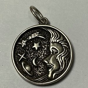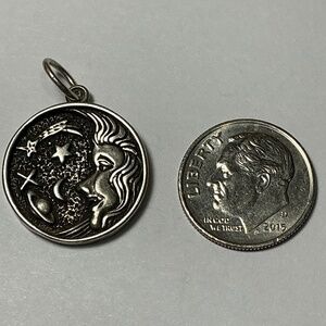 Sterling Silver Celestial Scene Pendant for Necklace. 3/4 inch diameter